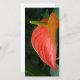 red anthurium plant or flamingo flower with spadix protruding from red spathe against green foliage
