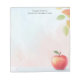 This beautifully designed personalised notepad features a vibrant red apple resting on a soft pastel background with warm autumn leaves in the corner. The watercolor-inspired design gives it a timeless and cosy feel, perfect for teachers, students, and anyone who loves classic stationery with a seasonal touch. Personalise the text at the top to make it a thoughtful gift for educators, writers, or daily note-taking.