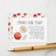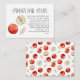 Rustic apple theme baby shower book request card featuring watercolor illustration of red apples. The card asks guests to bring in a new or used children's book instead of a card.