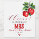 Red Apple bridal shower wine label features red apples on the branches of an apple tree with green leaves with phrase: Cheers to the future Mrs