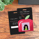 A vertical black badge for any school staff member featuring part of a partial red apple and a medium size photo . Personalise it with the employee's picture , name , job title , school name and the establishment's address . A small white rectangle is provided on the back for the teacher's signature or a bar code . This design is also available in white and light red .