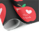 A black wrapping paper that will remind you of a chalkboard with the pattern of a red apple with a pink little heart inside . Personalise the text with your own . Ideal to wrap teachers gifts .
