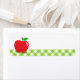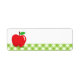 Blank labels featuring a nice red apple with a green leaf. Along the bottom is a green gingham pattern border. Add your own text.