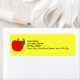A cute cartoon red apple with a green worm poking out from the apple with a big grin. Add your own text to the design to make is all yours.