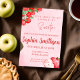 Take a bite out of something sweet with this apple inspired shower invitation! Featuring an apple tree filled with apples accompanied by a single apple and slice, this invitation is both rustic and bohemian with just the right amounts of modernity and femininity. With a red watercolor background accenting the traditional and cursive apple red fonts, this invitation is perfect for your bridal shower, wedding shower, or baby shower!