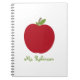 A spiral notebook for teachers featuring an illustration of a red apple. Personalise with your name.