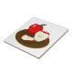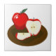 A graphic design of red apples by artist/designer Charmaine Paulson on a kitchen tile.