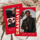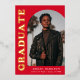 Stylish and trendy graduation announcement featuring the graduate's photo on the front with an offset arch photo frame. "Graduate" is displayed in bold gold foil lettering on a red background. Personalize the front of the arch photo graduation announcement by adding the graduate's name, school, and graduation year. The card reverses to display an additional 3 photos with space for custom text such as future college plans, career plans, graduation party details, etc. The gold foil graduation announcement is perfect for both high school and college graduates.