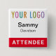 Red Attendee Name Badge Event Logo Pinback Square