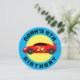 Red auto race car kid's Birthday party invitations. Round automotive theme party invites for children's Birthday, BBQ, racing car driving event etc. Personalised text and background colours. Cute racecar drawing with custom name and age of child. Dynamic typography template. Personalise for sporty boy or girl. Funny circle cut out shape. Kid's toys illustration. Make circular invites for 4th 5th 6th 7th 8 th 9th 10th 11th 12th 13th Bday etc. Also nice for children of mechanic or driver.