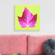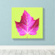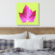 Decorate a wall with this canvas art print that features the photo image of a red autumn Maple leaf contrasted against a bright, green background. A colourful, botanical design! Select your canvas print size and other options.