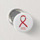 Awareness pin features the painting of a red awareness ribbon on a custom button pendant. The meaning of the red awareness ribbon is support for AIDS / HIV, Cardiovascular (Heart) Disease, Stroke, Alcohol Substance & Drug Abuse, Blood Cancer, MADD (Mothers Against Drunk Driving), DARE (Drug Abuse Resistance Education), Haemophilia (Project Red Flag), Disaster Relief, Marfan Syndrome, Epidermolysis Bullosa (EB), Hypertension (High Blood Pressure), Love, plus more. Red awareness ribbon art lapel pins or buttons can be customised with personalised messages to make great cause buttons for fundraiser pendants for cancer or other causes, awareness pin gifts, or other special pendant events or awareness lapel pin for cause's occasions.