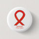 Awareness pin features the painting of a red awareness ribbon on a custom button pendant. The meaning of the red awareness ribbon is support for AIDS / HIV, Cardiovascular (Heart) Disease, Stroke, Alcohol Substance & Drug Abuse, Blood Cancer, MADD (Mothers Against Drunk Driving), DARE (Drug Abuse Resistance Education), Haemophilia (Project Red Flag), Disaster Relief, Marfan Syndrome, Epidermolysis Bullosa (EB), Hypertension (High Blood Pressure), Love, plus more. Red awareness ribbon art lapel pins or buttons can be customised with personalised messages to make great cause buttons for fundraiser pendants for cancer or other causes, awareness pin gifts, or other special pendant events or awareness lapel pin for cause's occasions.