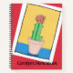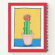 This artist's sketchbook is decorated with an original drawing of a red ball cactus, and can be personalised with your name and words. It is hand drawn using pens and watercolour. The cactus has a green base and a prickly red top, and is in a flower pot. The background is yellow and blue, the pot is pinky beige and the cactus green and red. It has a a thin black border and white surround on a red background. It's a charming example of simple, naive, art. The drawing is also on the back of the notebook.