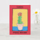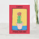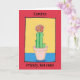 Say a fun Happy Birthday with this cute card. It has a naive art drawing of a red ball cactus, and can be personalised with your name and words. The cactus is in a pinky beige flower pot against yellow and blue, and the background is red. You can personalise the card with your own message inside, or leave blank. The artwork is original and only available from The Art of Being Beth at Zazzle.