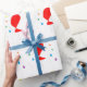 Red balloons with colourful confetti pattern wrapping paper