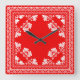 Red Bandanna Pattern Square Wall Clock