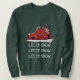 Red barn in a snowstorm with Let It Snow makes a great ugly Christmas Sweater! Vermont Scene, New England Winter.