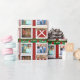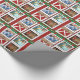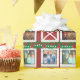 Red barn door custom holiday gift wrapping paper with open doors to add your favourite photos. Replace the existing photos with your own SQUARE SHAPED photos.