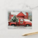 Red Barn, Snowy Landscape, and Festive Tree Postcard