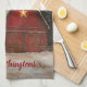 Red Barn w Star n Winter Trees Farmhouse Monogram Tea Towel