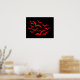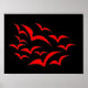 This poster features a collection of simple images of bats flying together in a cloud pattern. The bats are red and the background is black. Kids are sure to love this cute design. If you don't have time to make your own Halloween posters then this is for you. Why not use this as a poster and for next year cut out the bats and make a Halloween mobile out of them.