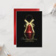 Simple and elegant Christmas party / dinner invitation template featuring a red Christmas bell with golden ribbon on black.