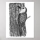 Black and white illustration of Red-bellied Woodpecker on tree by Yuichi Tanabe