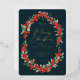 Hand painted red berries and stems of eucalyptus arranged into a botanical frame on a dark green background.  The scattered dots and text on the front of the card are all foil pressed in a colour of your choice. All text except for 'Merry Christmas' is fully editable so you can easily change the style, size and placement. The back of the card has (standard print) template text for a longer message/yearly summary, but delete before ordering if you would prefer a blank backer  - or upload a photo instead. The design is available in other colours and in a non-foil version in my store.