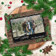 Unique, classic, trendy, pretty and decorative Holiday card. Cute Happy Holidays greeting text and room to customise or personalise with a photo, family name (or individual names) and message of your choice. Framed by Burgundy wine red berries and dark green foliage wreath bouquets on a classy rustic country cottage farmhouse style barnwood wooden planks pattern background.