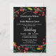 A watercolor bough of red and green Christmas wreath / berries arch above and below your wedding invitation. The watercolor is bright against a black background that features your wedding invitation text in shades of silver in contrasting, modern fonts. The modern fonts also feature some modern phrasing and capitalisation. The couple's names and "Wedding" are in a slightly lighter shade of silver than the remainder of the text. The back is a pale silver for your hand-written message - if you wish. However, your return address, space for a typed personal message and "Kindly Deliver To: are in a deep, deep grey. Above the couple's name is a bough and red berries, while a denser set of greenery and berries are placed upright at centre. It is a simple matter to swap your information, one line at a time, into our placeholders, just click "Personalise" to get started.
