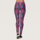 Leggings featuring elegant floral pattern, red berries and blue leaves. Design elaborated from handmade tissue paper collage.