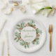 Red Berries Pine Cone Christmas Wedding Party Paper Plates . Show your gratitude and give thanks with this unique party paper plates . Customise it by changing the text and bride and groom's names along with the wedding date. For any further customisation , feel free to contact me at mypaperlove2021@gmail.com