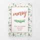 Trifold Christmas card with merry written in a warm red calligraphy script above a lush branch of green leaves and red berries. Add your family name and the year to the cover. Inside, you can add two photos along with a Christmas greeting or a little text about how the year's been for your family in the same warm shade of red. On the back you can add another two photos for four photos in total.