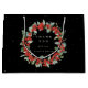 Elegant, black, Christmas/Holiday 'Thank You' favour or gift bag. Featuring a wreath of hand painted red berries and eucalyptus. All text is fully editable so you can easily change the font style/colour/size and delete or move text. Different sized bags and coordinating items available in my store.
