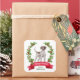On these Holiday correspondence stickers, a watercolor portrait of a Pointer Dog is surrounded by a red berry holly wreath. At the bottom is a red banner with your custom Christmas greeting, and your signature is in green beneath it.