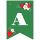 Red, white, and green berry sweet baby bunting flags for a strawberry themed baby shower. Decorate your baby shower with these strawberry themed bunting flags with bold letters, juicy strawberries, and pretty strawberry blossoms in red, white, and green for the perfect summer decor.