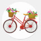 Red Bicycle With Basket Of Flowers - Classic Round Sticker