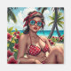 Cute beachy pop art magnet. A cute comic book style cartoon illustration of a woman in a red polka dot bikini, bandanna and sunglasses.