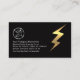 Overleaf, a black cover is accentuated by a gold flash of lightning to its right. Card details are over on the left with the silver logo at the top followed by your prestigious name, the contact details and a slogan option to publicise your services.