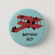 red biplane birthday boy pin button