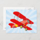 Red Biplane Graphic with Blue Star Burst Postcard