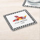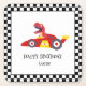 Red Birthday Dinosaur race car boy racing kid name Square Paper Coaster