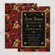 Red Black and Gold Marble Floral Sweet Sixteen Invitation