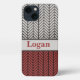 This phone case would make a great gift for your husband or boyfriend. It has a very masculine look to it with the top being grey and black chevron pattern and the bottom a reddish rust and black chevron pattern. Separating the two halves is a grey panel where you can personalise it with his name.