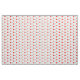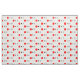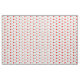 This fabric has red, black, and grey polka dots.