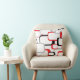 A cool retro inspired design of red, black and grey squares against a white background on a pillow