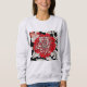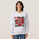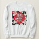 Sweatshirt in a large, red, camellia flower, in an Art Nouveau inspired style, with a floral background in black and white