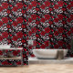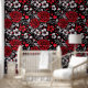 Red, black and white floral roses and hearts romantic peel and stick wall paper.