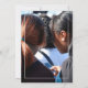 Trendy girl photo grad party invite with elegant typography and an African American influence and a hint of navy blue.